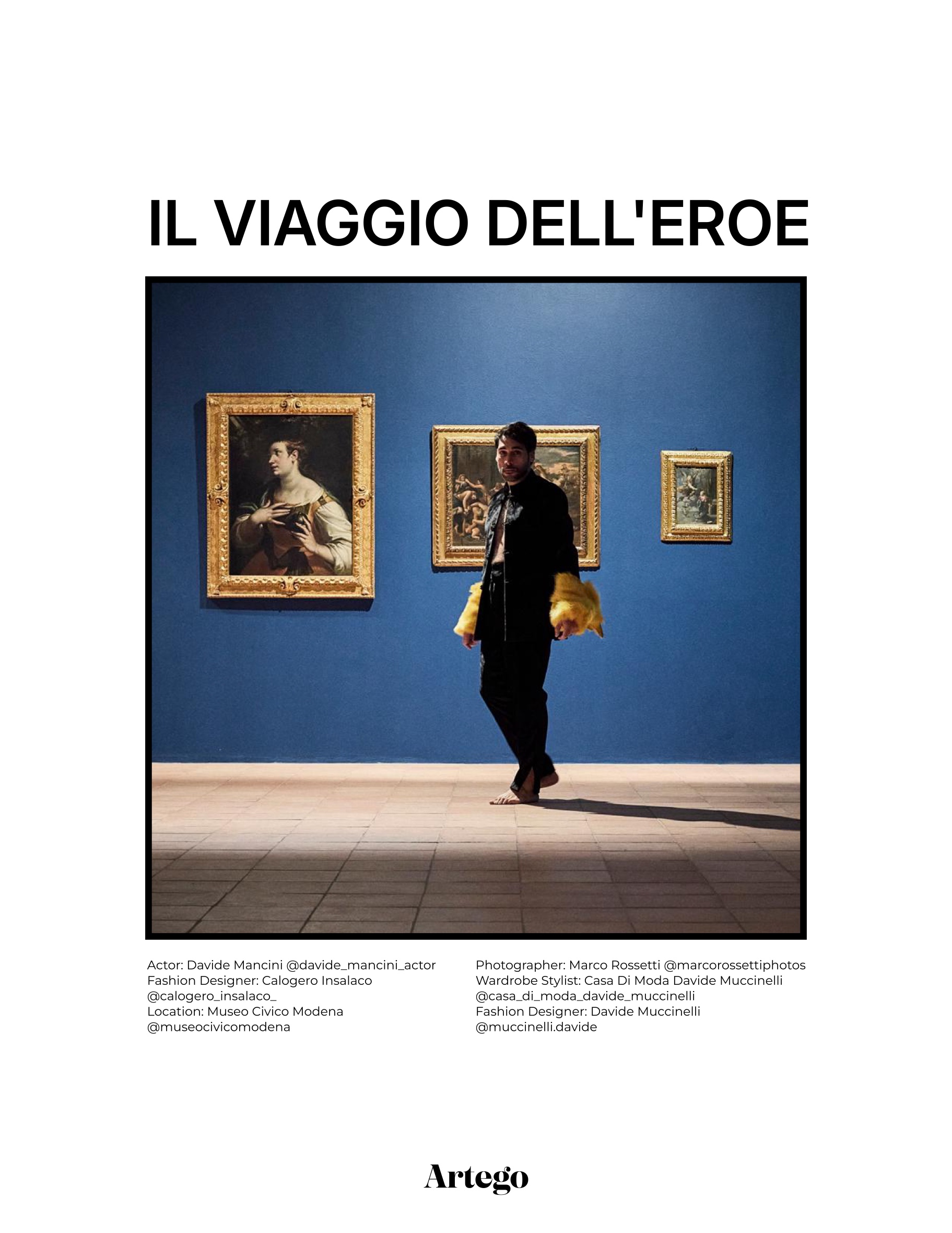 IL VIAGGIO DELL' EROE : L’Alta Moda al Museo Civico di Modena, Davide Mancini per la Casa di Moda Davide Muccinelli conquista la copertina di ARTEGO