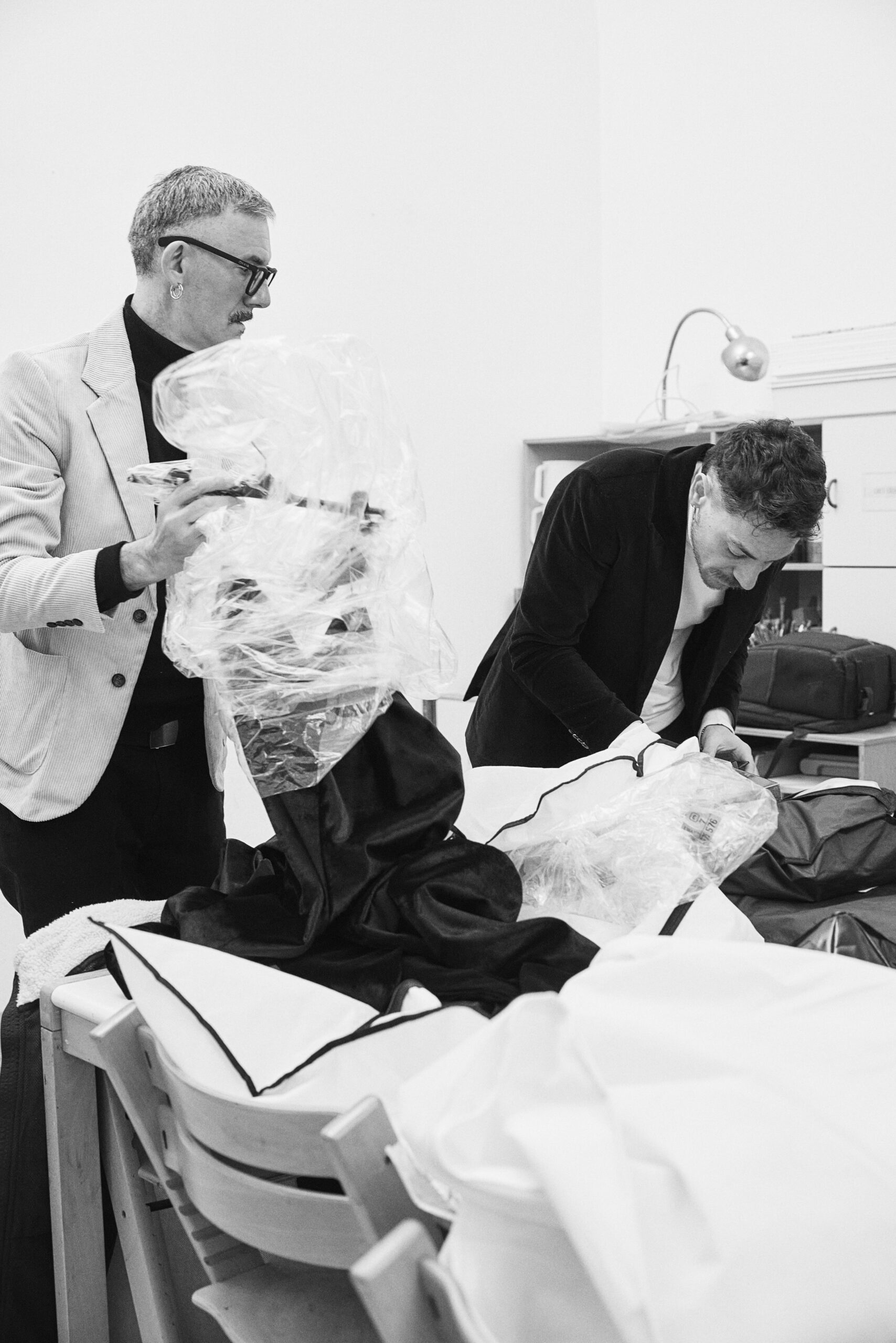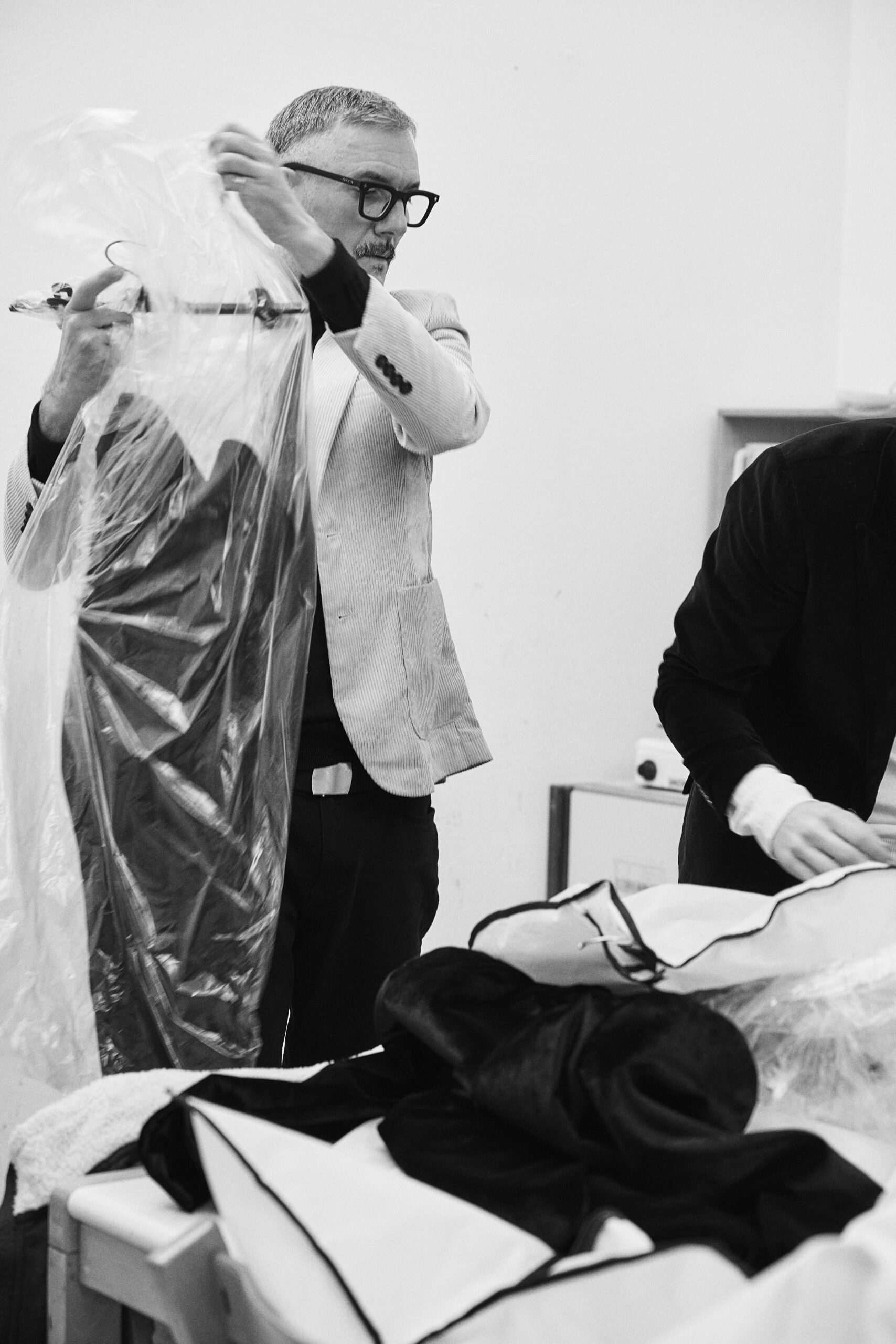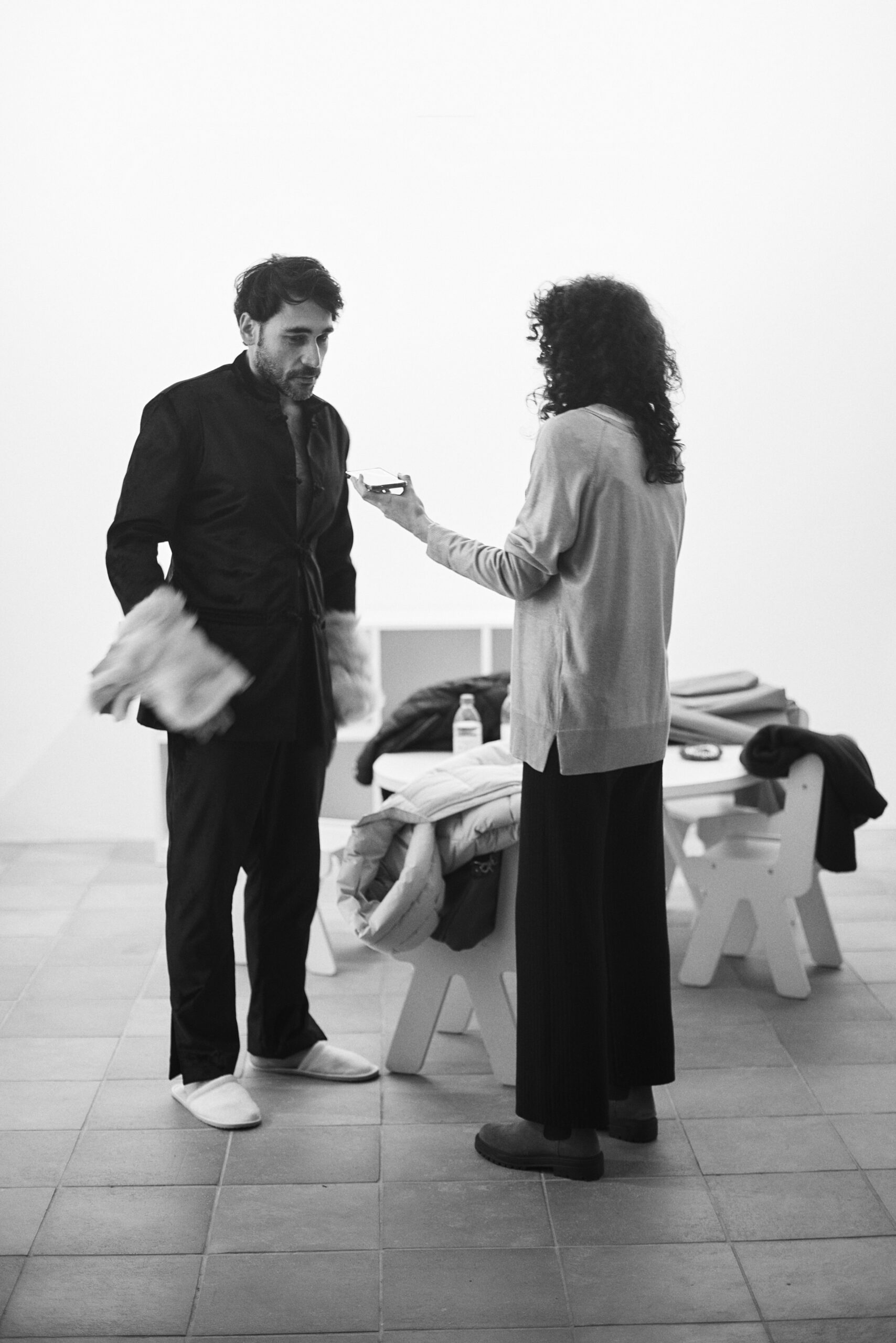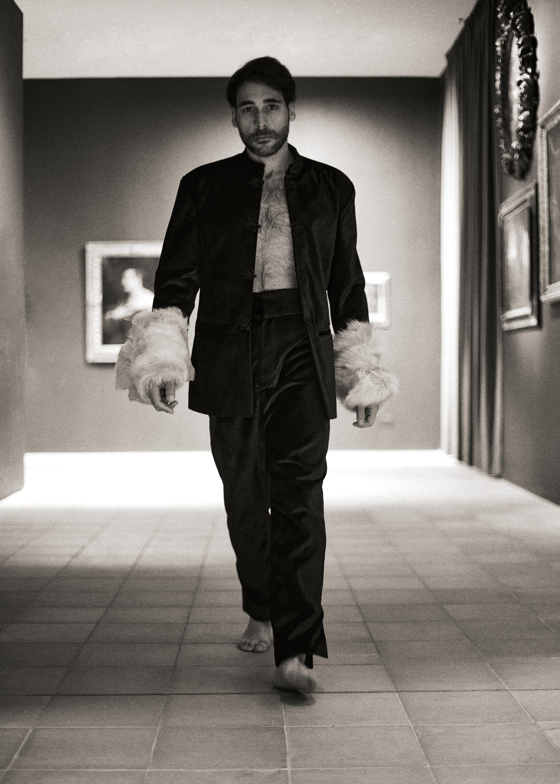 Il progetto nasce da un’amicizia profonda e da una visione estetica condivisa. I designer Davide Muccinelli e Calogero Insalaco hanno saputo tradurre il carisma di Davide Mancini in pezzi unici di Alta Moda contemporanea.