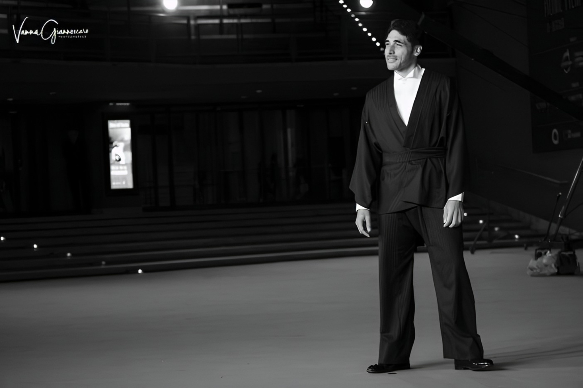 Roma 20th Film Fest – Red Carpet Premiere “Guerrieri” La regola dell’equilibrio, I designer Davide Muccinelli e Calogero Insalaco, della Casa di Moda Davide Muccinelli, vestono l’Attore Davide Mancini per il Red Carpet del 20° Roma Film Fest