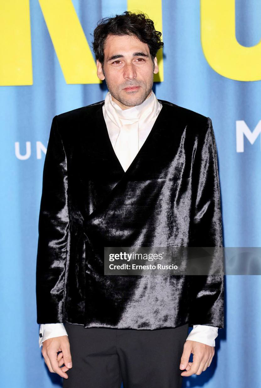 La pulizia estrema delle linee è il risultato di una costruzione sartoriale complessa, studiata appositamente per mettere in risalto l’eleganza naturale di Davide Mancini. L’attore si conferma così un’icona di stile in una serata che celebra la grande narrativa cinematografica italiana nel mondo attraverso il prestigioso canale HBO.