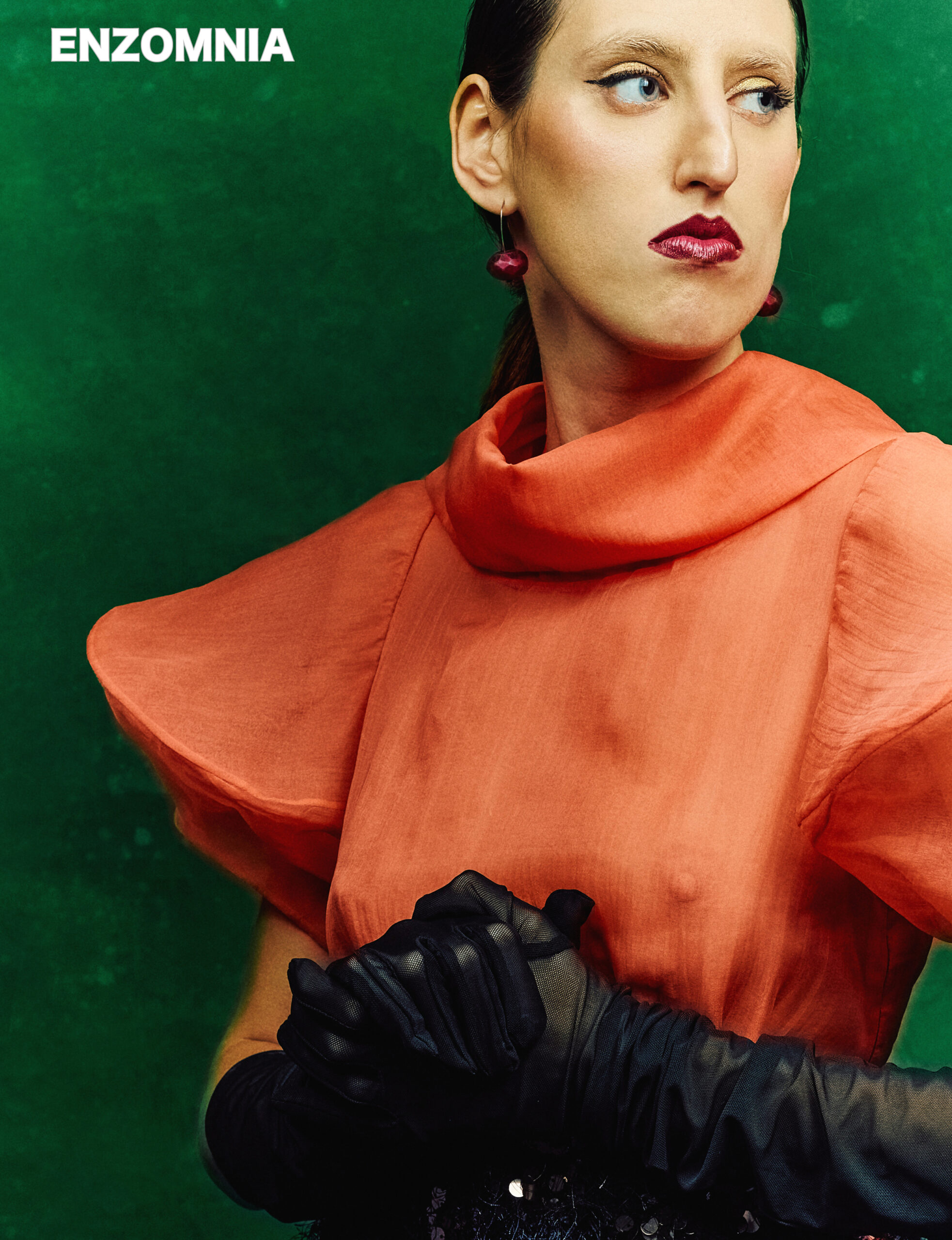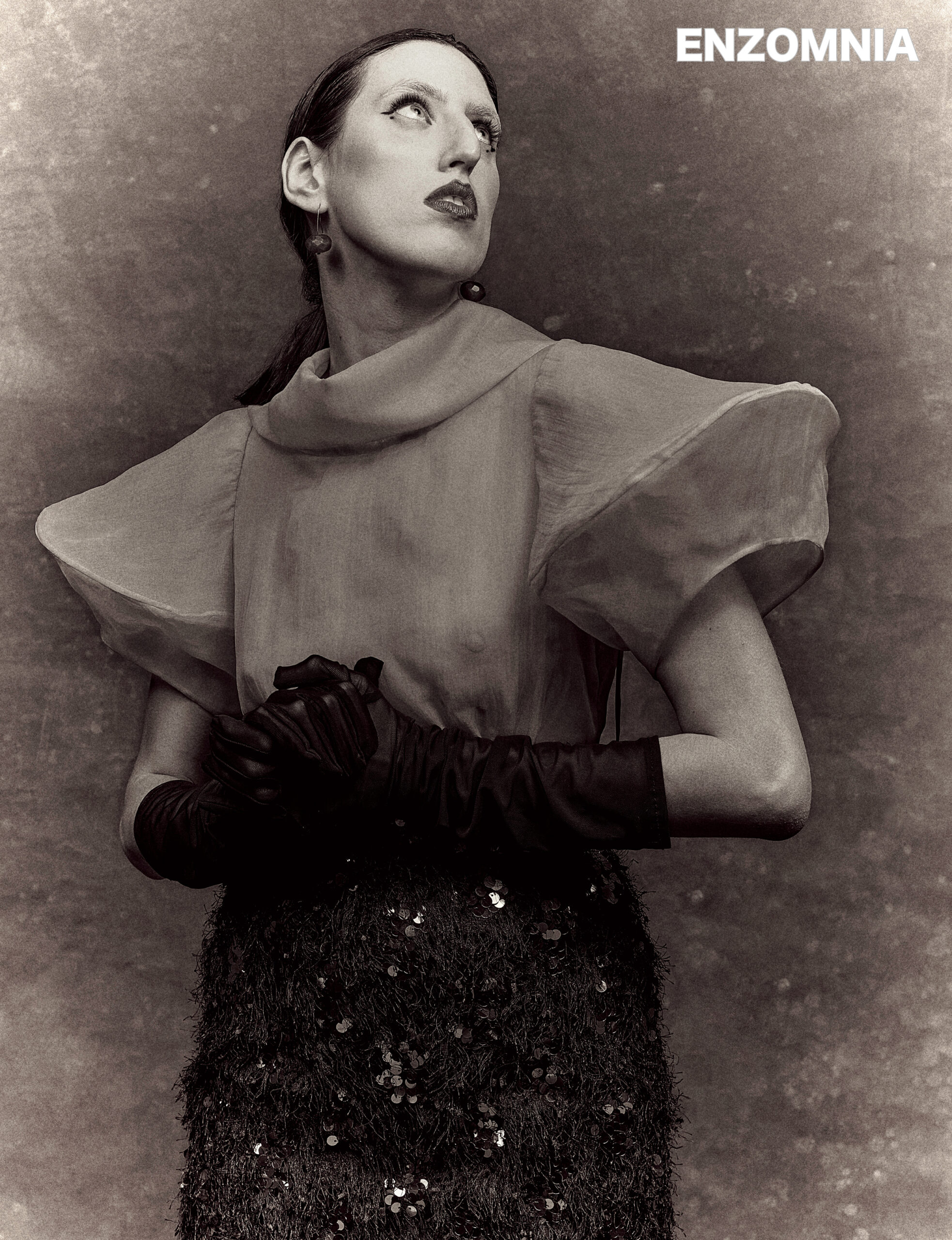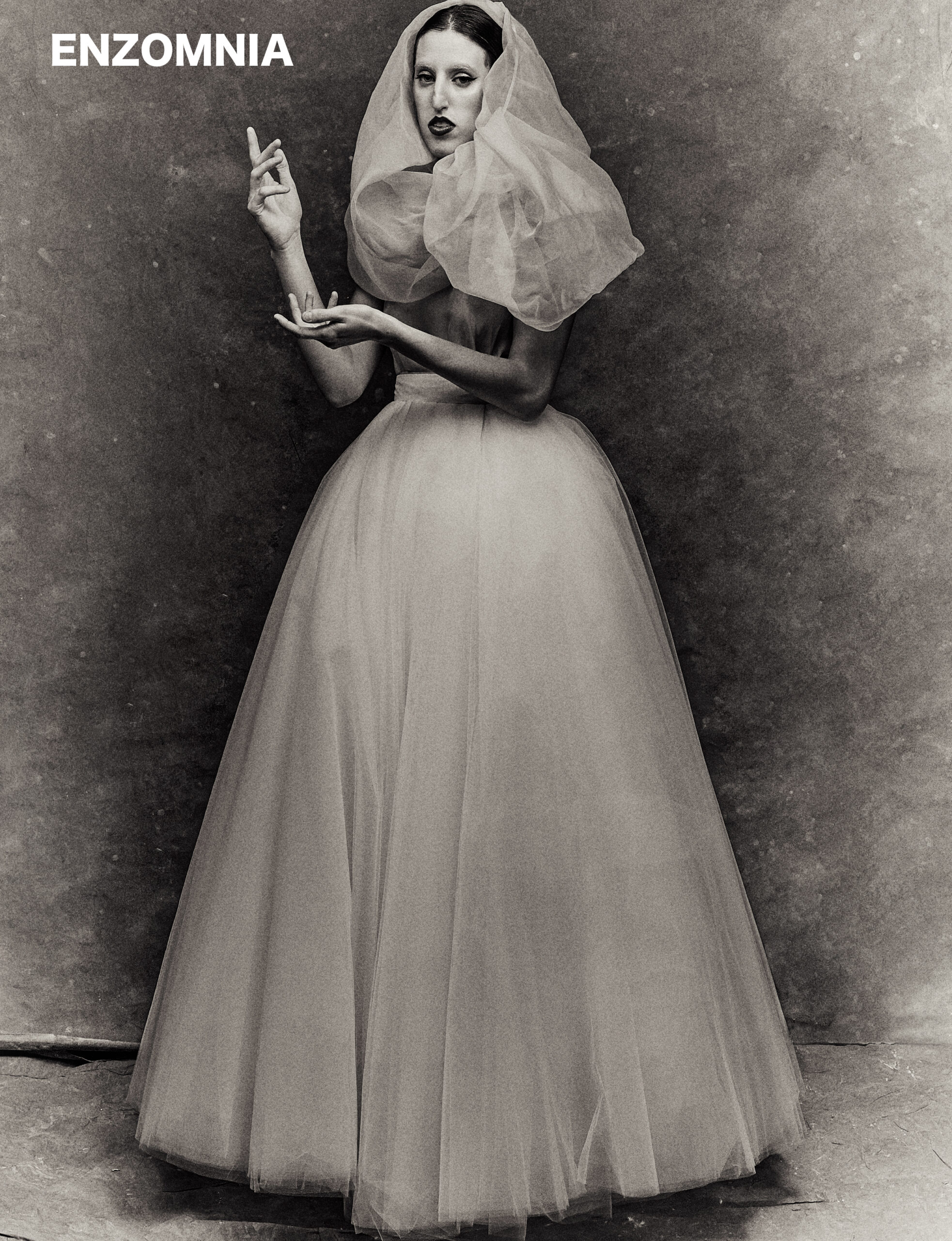 In questo nuovo capitolo creativo, l’eleganza non si limita a vestire il corpo, ma lo mette in discussione. Gli abiti firmati da Davide Muccinelli e Calogero Insalaco per la Maison Bolognese diventano armature di sogni e veli di follia, protagonisti di un set dove l’ironia tagliente incontra il rigore dell’Haute Couture.
