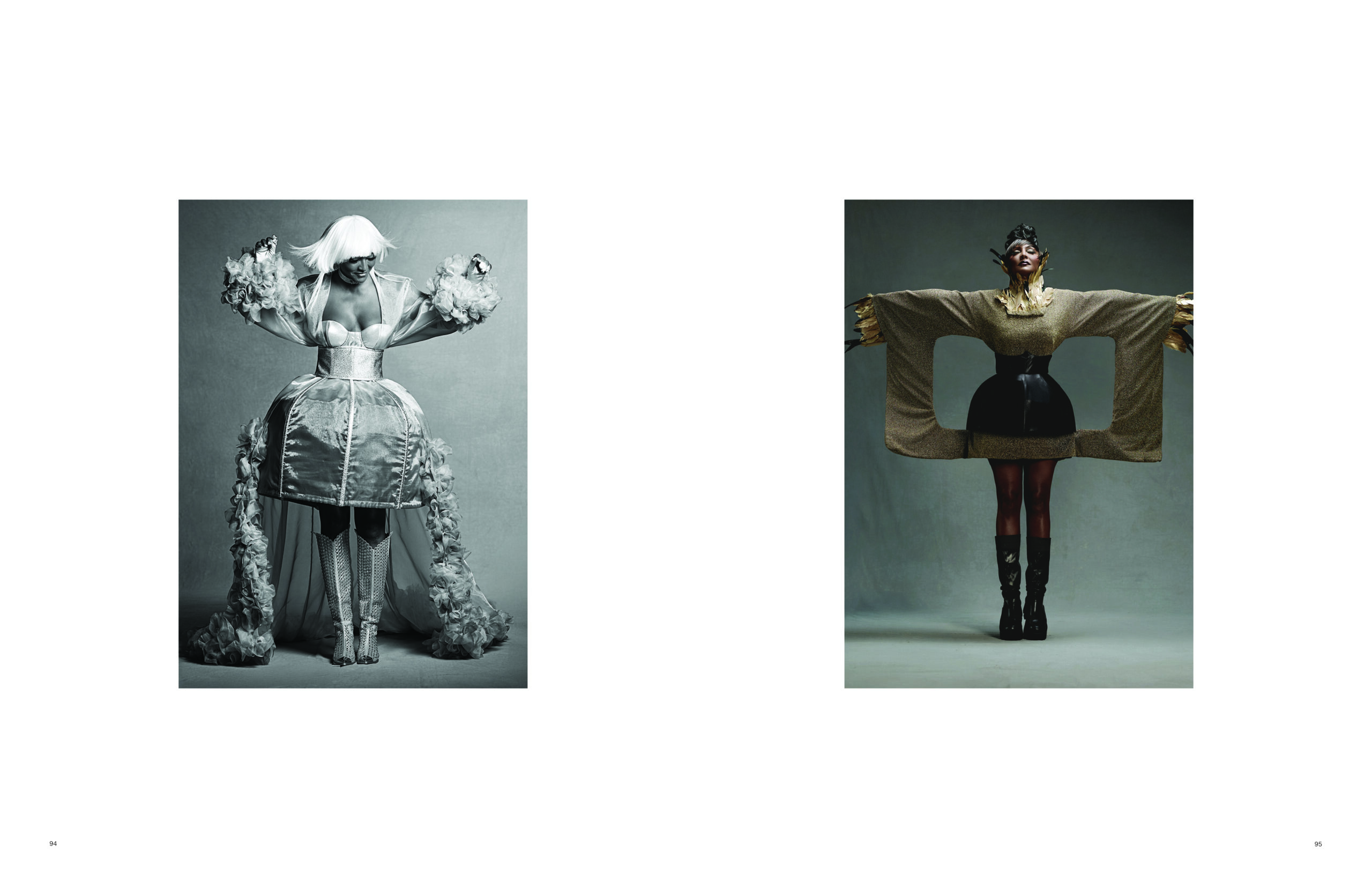 “Il mood sviluppato nella creazione dei capi per il tour mondiale – proseguono nel racconto Muccinelli e Insalaco – compone uno scenario onirico e futurista in cui l’autorita’, l’autorevolezza e l’eleganza di una Queen si fondono all’immagine piu’ iconica di una Fashion Doll. Il particolare taglio delle silhouette stilistiche e’ legato anche alla ricerca sui materiali utilizzati, capaci di dettagliare e valorizzare al meglio geometrie e volumi di ogni outfit e di generare, in alcuni casi, una scomposizione della figura per ottenere una performance all’interno della performance dell’artista. Allo stesso modo, lo studio delle cromie, dell’opacita’, delle riflettanze e cangianze dei tessuti, interagisce con le volute dinamiche di ogni singolo abito.”