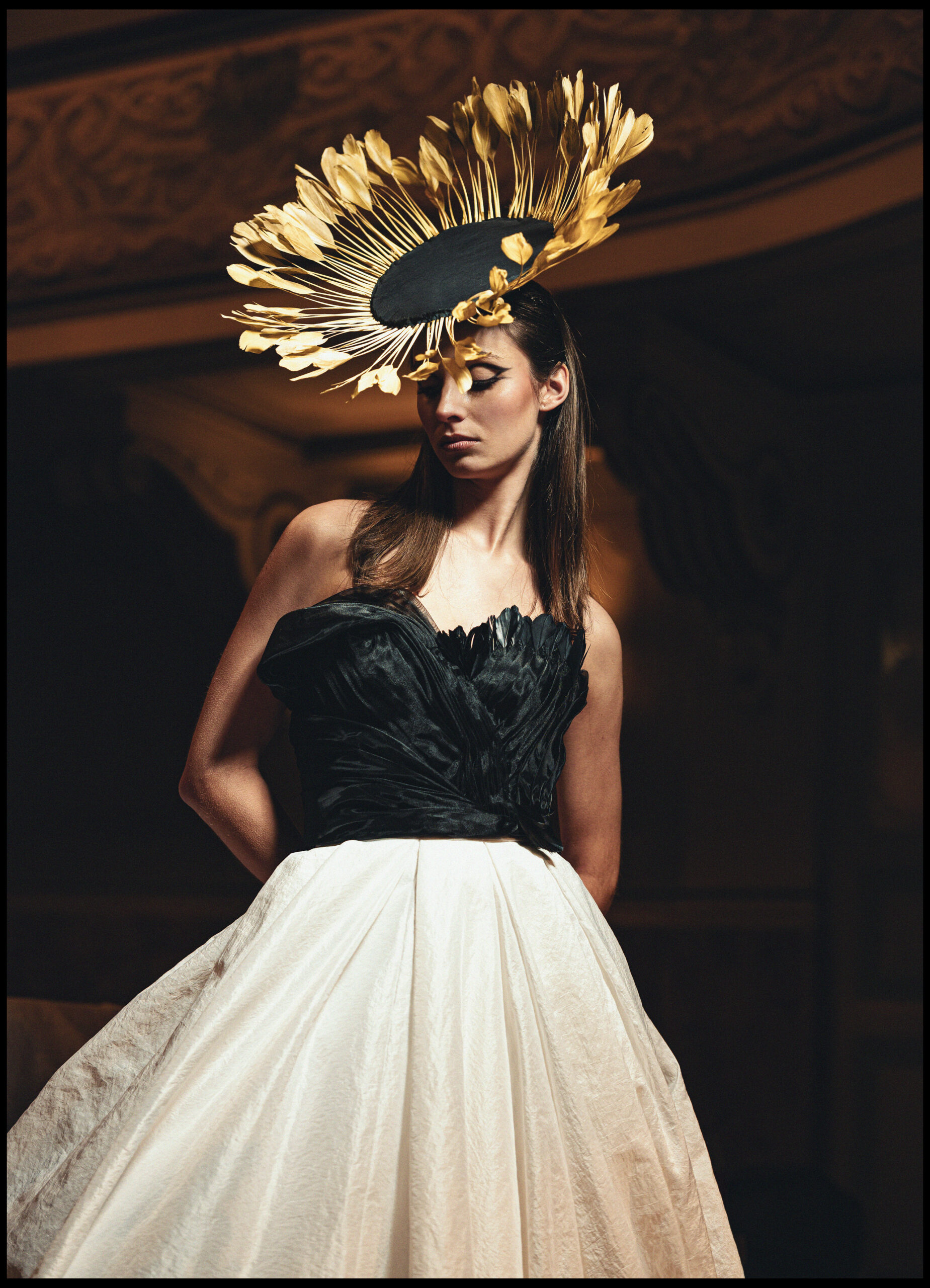 Dedicated to the Italian singer and actress Nilla Pizzi. Nilla, a free and enterprising woman, was a beacon of elegance and talent in the world of music and cinema. The Casa di Moda Davide Muccinelli wishes to pay homage to Nilla right in the theater of her hometown, recognizing her extraordinary path, which saw her start as a seamstress and become the winner of the first Sanremo Festival in 1951, with the famous song “Thanks dei fior”. Characterized by a voice with a warm and full-bodied timbre, Nilla Pizzi became one of the most successful singers of her time on a national and international level, earning the nickname “Queen of Italian song”. Her presence on stage was always accompanied by an innate elegance, reflecting the refined style of the golden years of Italian music, so the Italian maison pays homage to a great artist who made freedom the bulwark of her success.