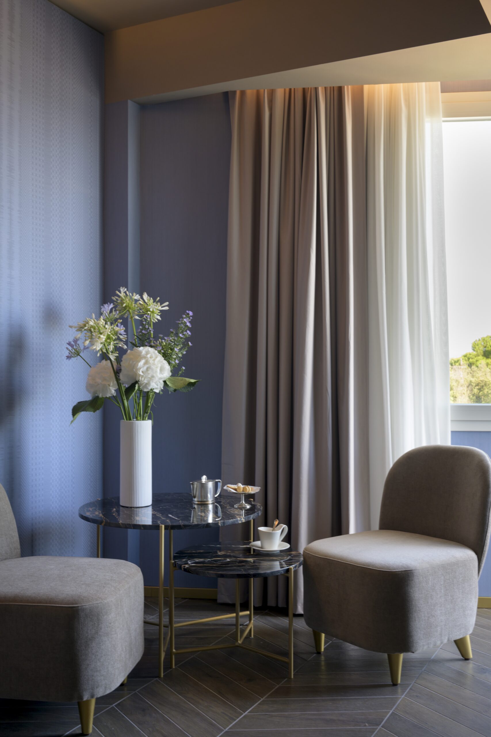 Con un’aria di esclusività, l’hotel mostra il suo rinnovato fascino, reinventato dal visionario designer Davide Muccinelli. Questa meticolosa impresa infonde modernità e stile contemporaneo negli spazi, preservando al contempo l’essenza e il carattere che si allineano con la visione del suo proprietario, il Dott. Aldo Grassi. Guidato dalla firma artistica di Muccinelli, in collaborazione con l’Azienda Mille997, un dialogo stilistico unitario si dispiega in ogni angolo della struttura, dalle aree comuni alle camere e suite.