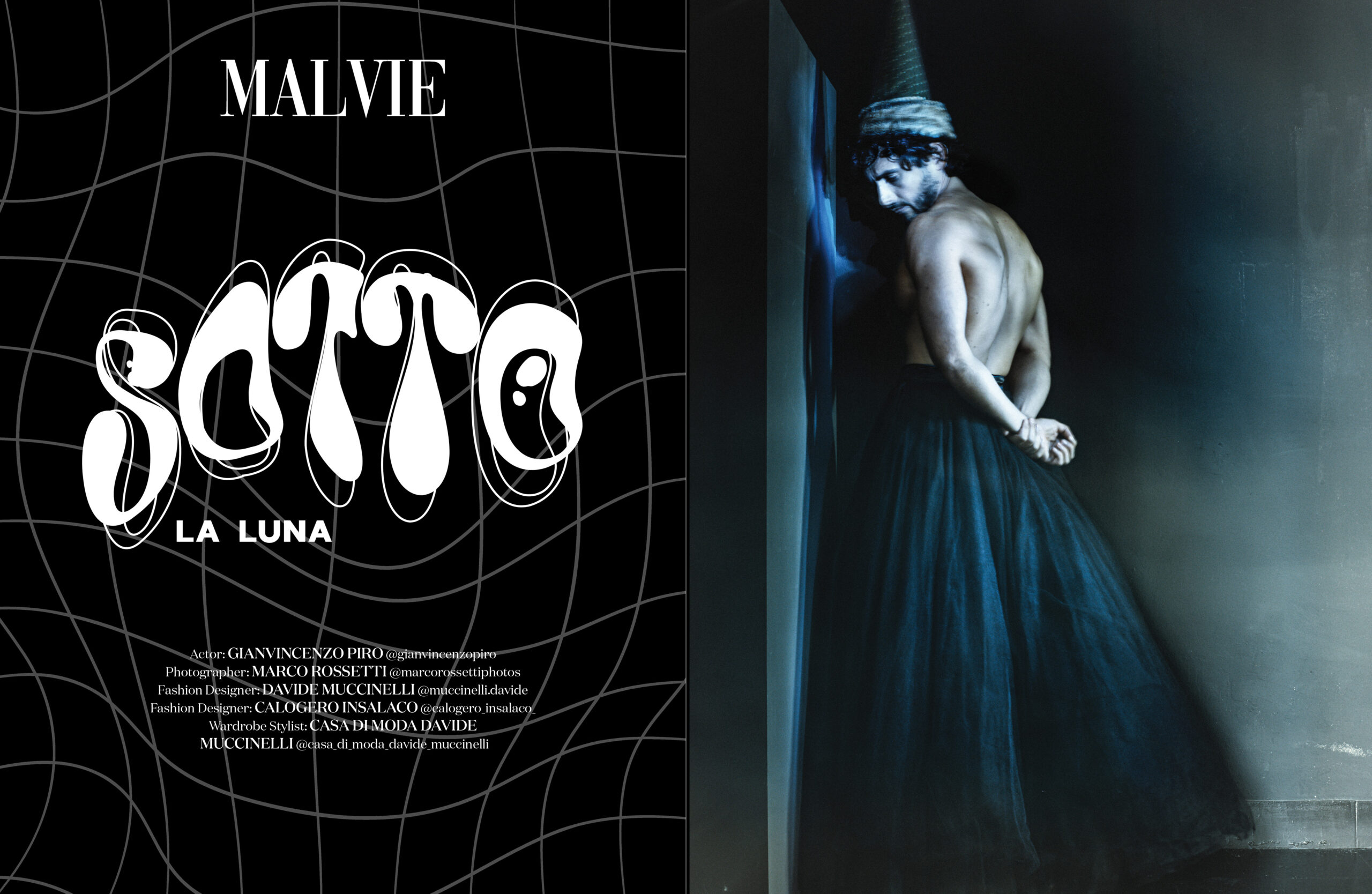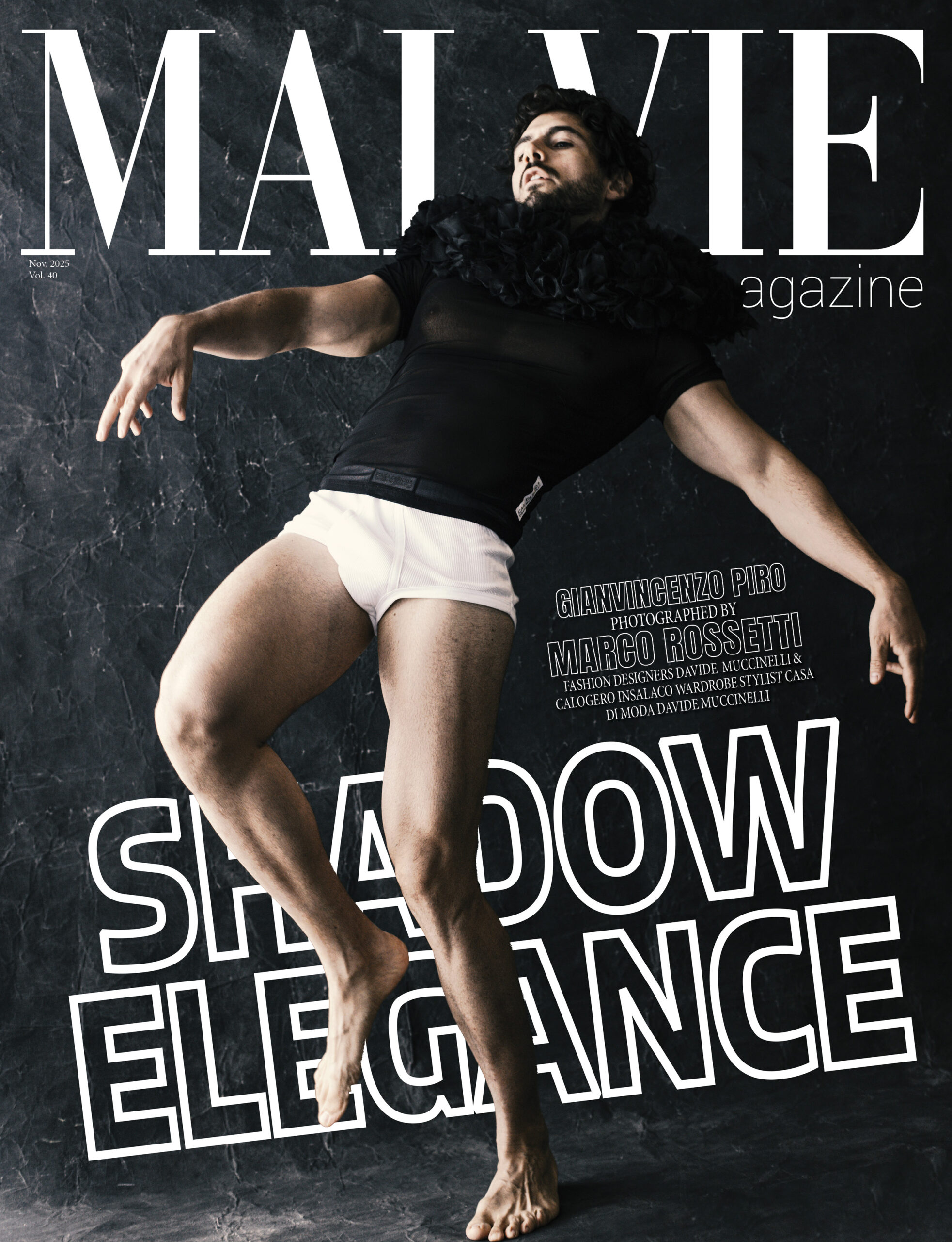 Nel 2025 l’incontro con i Designer della Casa di Moda Bolognese, Davide Muccinelli e Calogero Insalaco, per un progetto creativo ed artistico dove l’Alta Moda si confronta con i “volti” interpretati dall’ Attore Piro, in un viaggio onirico come un sogno. Al progetto si unisce il fotografo Marco Rossetti, amico della Maison, che immortala con i suoi scatti i frame di tale progetto.