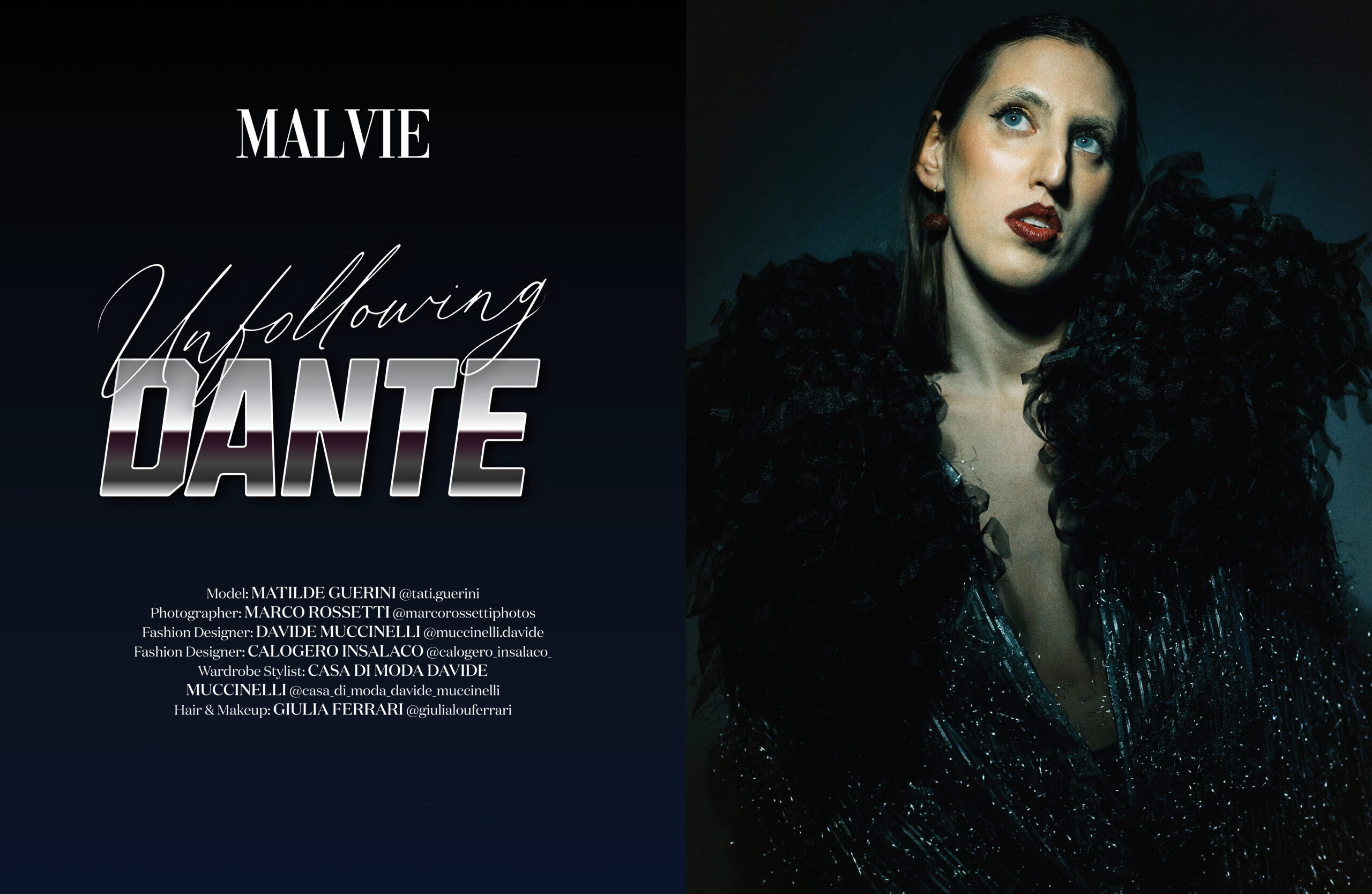 L’editoriale, intitolato “UNFOLLOWING DANTE”, è un manifesto di libertà che rompe i legami con l’iconografia classica per abbracciare un’estetica audace e contemporanea.