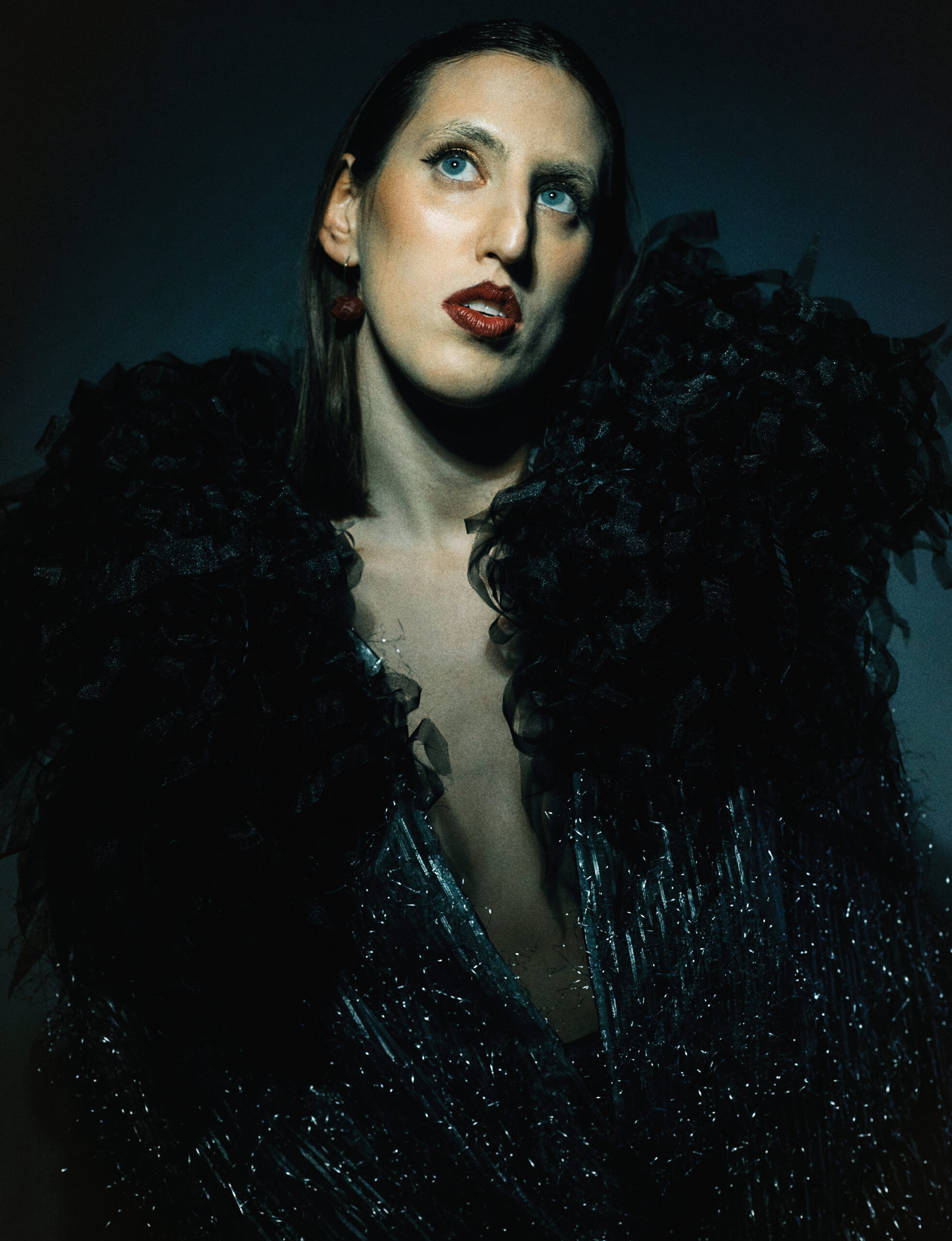 Abbandona l’algida noia dell’Empireo per abbracciare il brivido elettrico della sensualità. Tra sete che scivolano come peccati e trasparenze che sfidano lo sguardo, Beatrice non accetta più filtri, né padroni. Non è più l’amata che attende sulla soglia del cielo, ma una forza primordiale che si riprende il mondo. È la luce che smette di illuminare gli altri e inizia, finalmente, a raccontare se stessa.