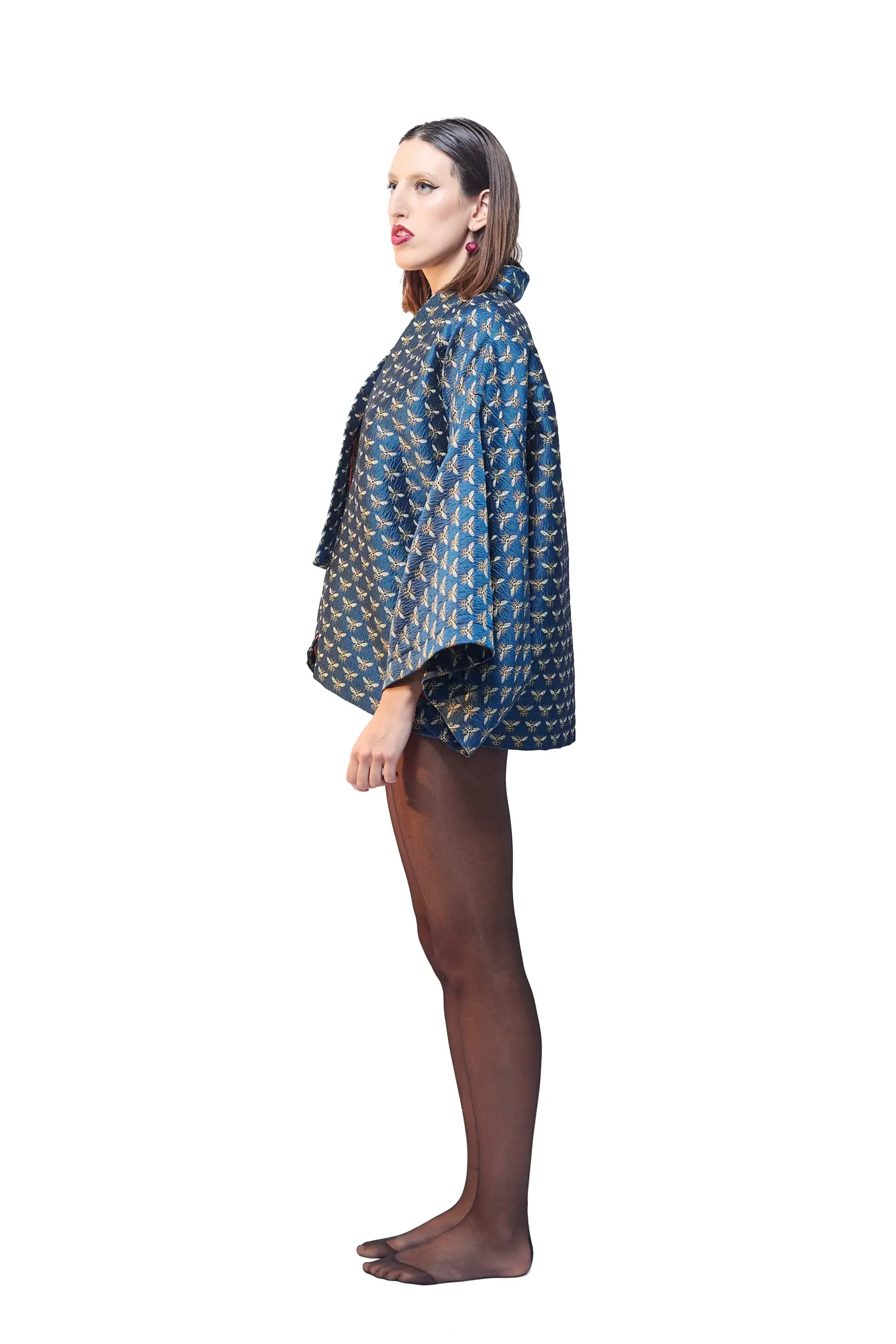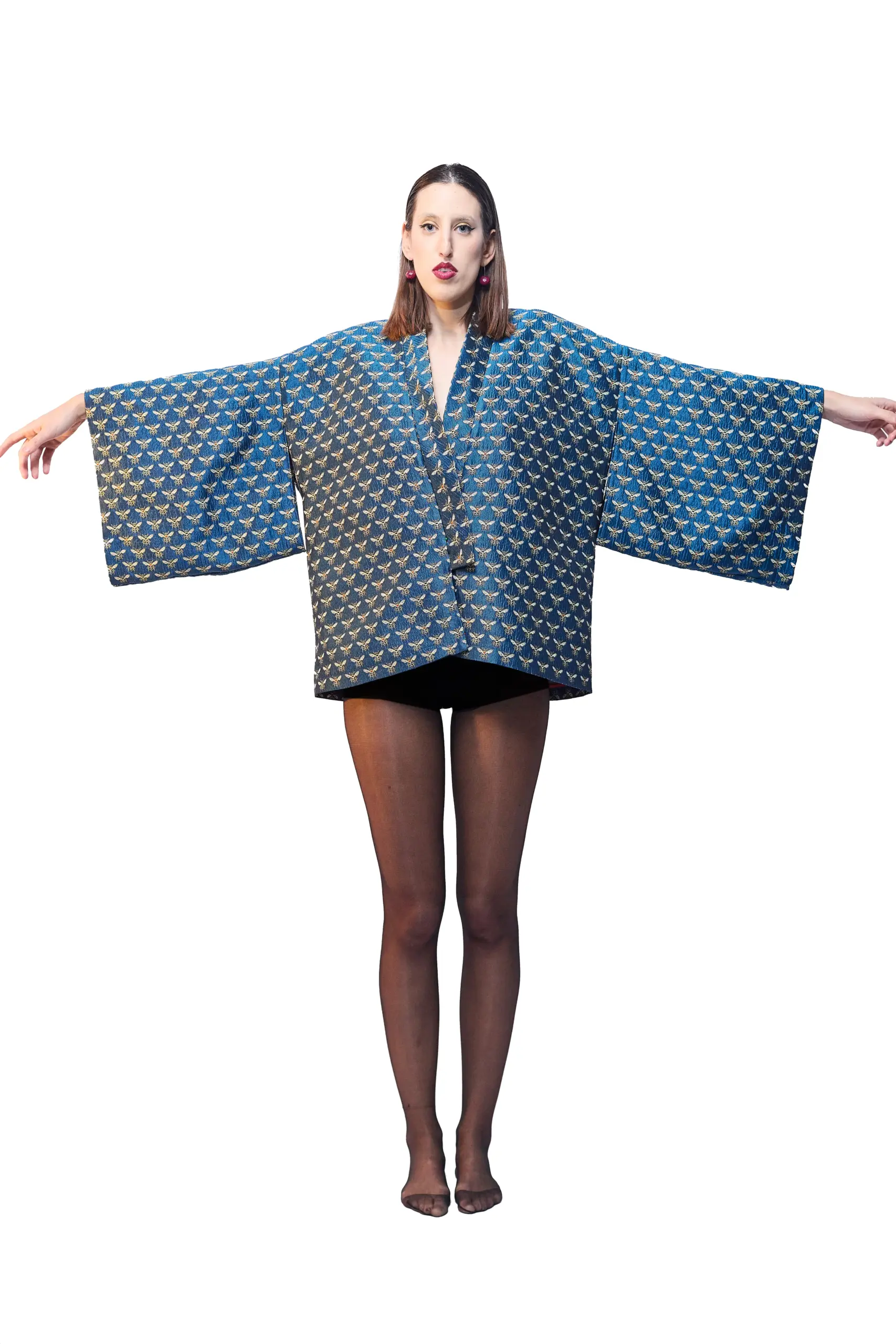 Il Kimono genderless in tessuto, creato dalla Casa di Moda Davide Muccinelli, è un accessorio luxury contemporaneo e sostenibile che reinterpreta in chiave moderna i tradizionali Kimono. KiMONO BEES nasce dall’estro creativo della Maison e dall’utilizzo di tessuti di recupero, per dare vita a un pezzo davvero unico ed esclusivo.