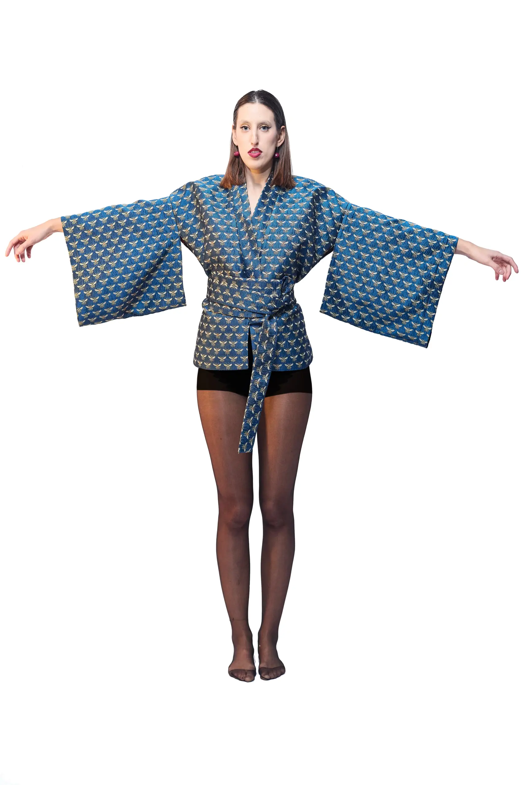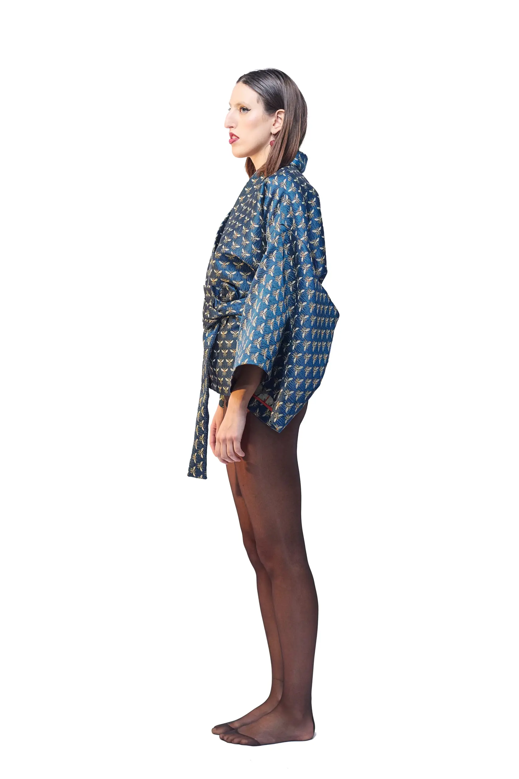 • Accessorio unico ispirato alle linee di un Kimono, contemporaneo, sfoderato, utilizzabile con o senza cintura.