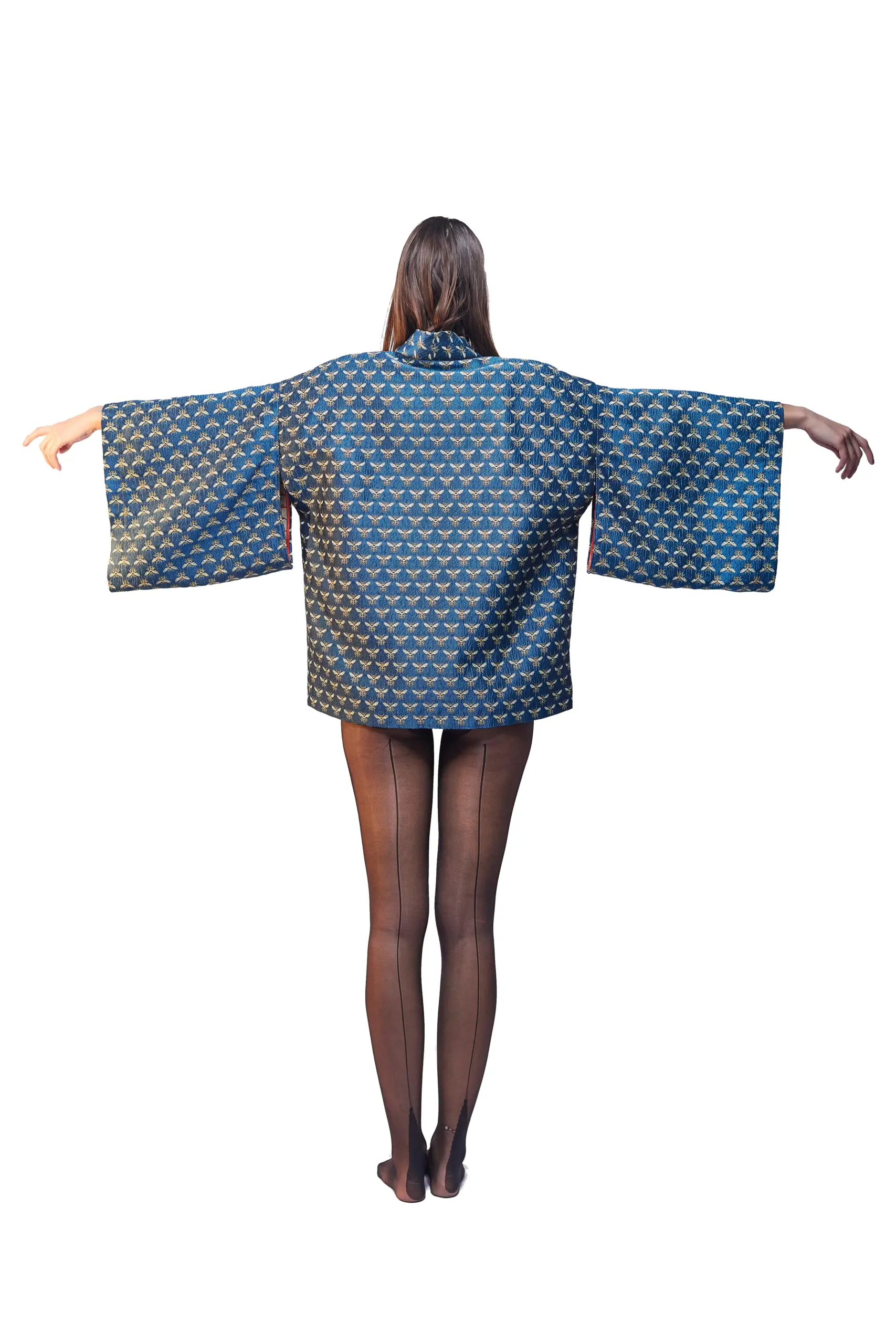 La cura artigianale e l’attenzione meticolosa ai dettagli permettono di ottenere un risultato che rievoca paesi lontani, ritrattando in versione contemporanea un elemento iconico. Indossabile su abbigliamento informale o elegante identifica uno stile molto personale e distintivo. Il capo può essere indossato con o senza cintura coordinata realizzata con lo stesso tessuto annodabile in vita. Ogni Kimono è un’opera d’arte irripetibile che coniuga raffinatezza e responsabilità, aggiungendo un tocco di stile a qualsiasi occasione con un approccio ludico e contemporaneo, senza mai rinunciare ai valori etici.