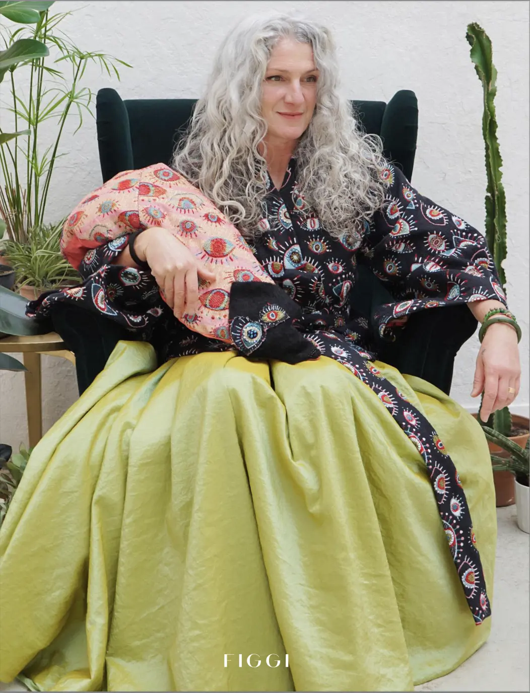 La cura artigianale e l’attenzione meticolosa ai dettagli permettono di ottenere un risultato che rievoca paesi lontani, ritrattando in versione contemporanea un elemento iconico. Indossabile su abbigliamento informale o elegante identifica uno stile molto personale e distintivo. Il capo può essere indossato con o senza cintura coordinata realizzata con lo stesso tessuto annodabile in vita. Ogni Kimono è un’opera d’arte irripetibile che coniuga raffinatezza e responsabilità, aggiungendo un tocco di stile a qualsiasi occasione con un approccio ludico e contemporaneo, senza mai rinunciare ai valori etici.