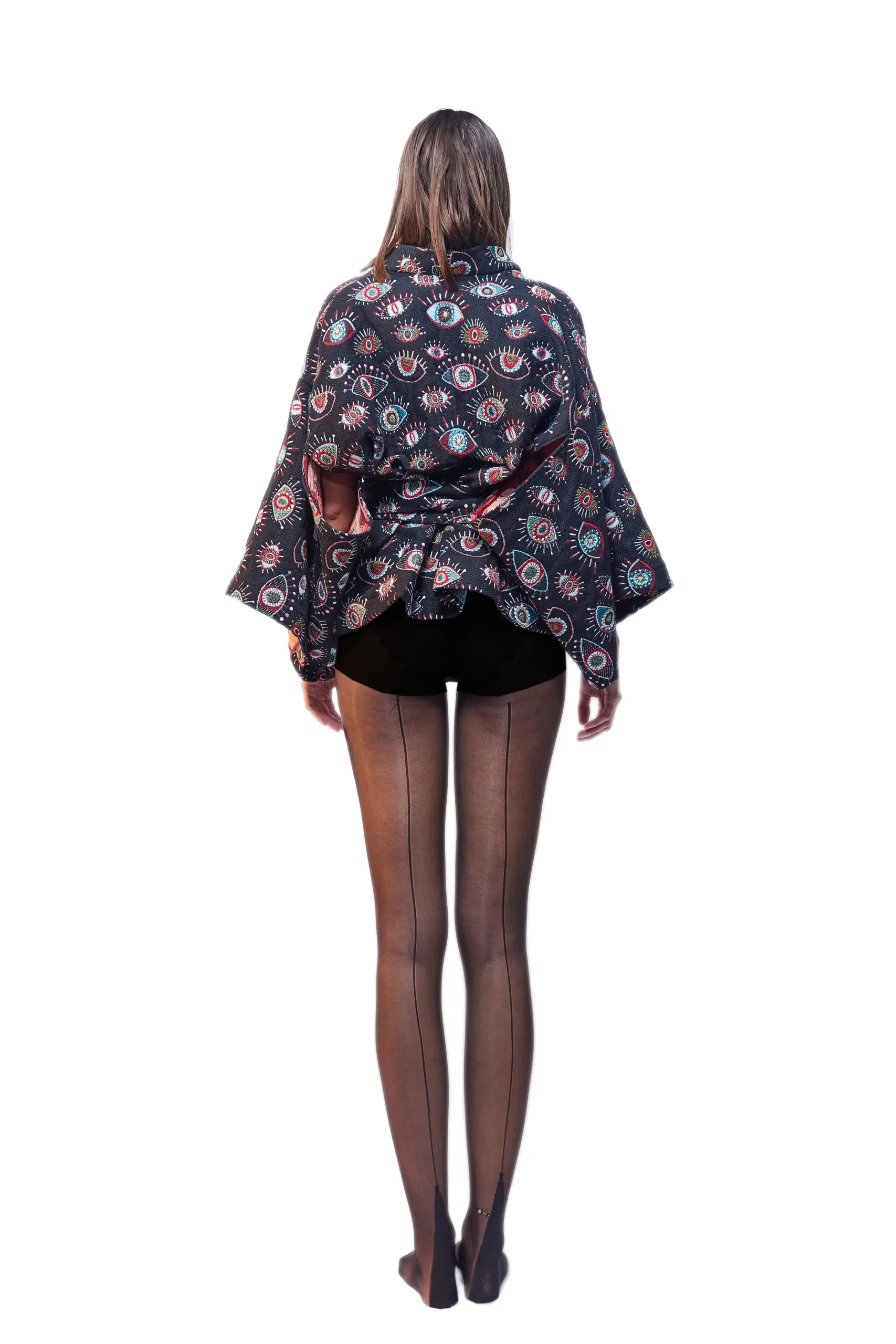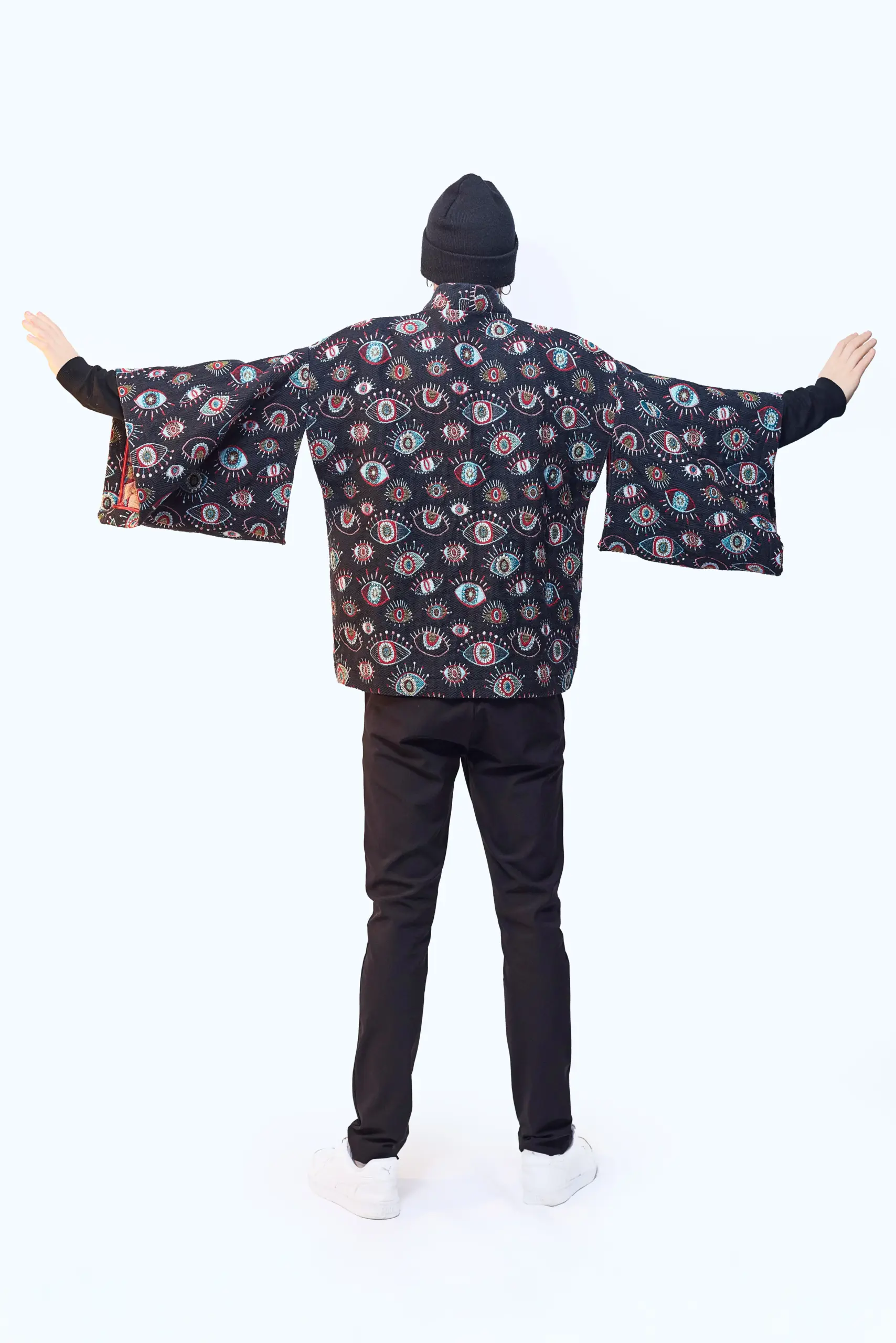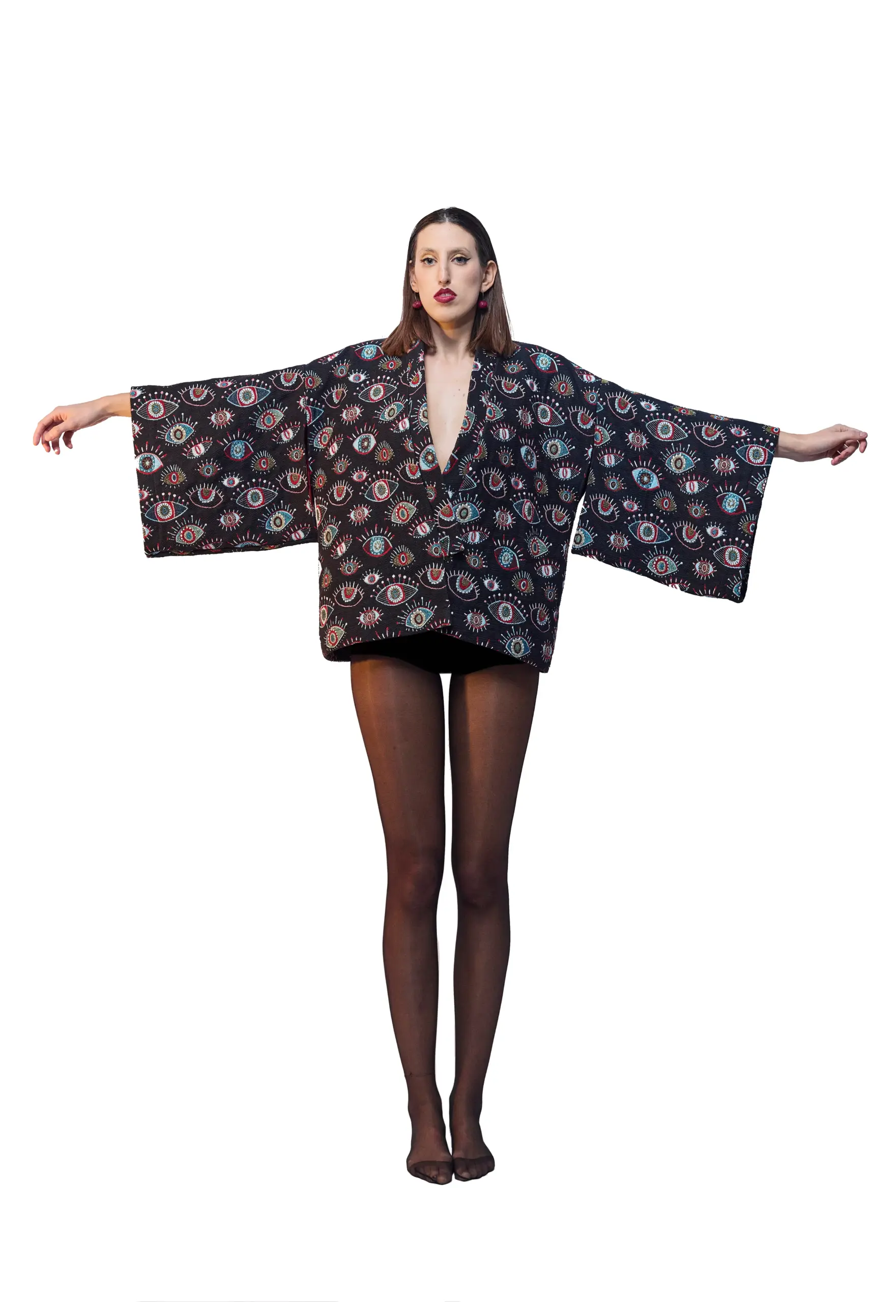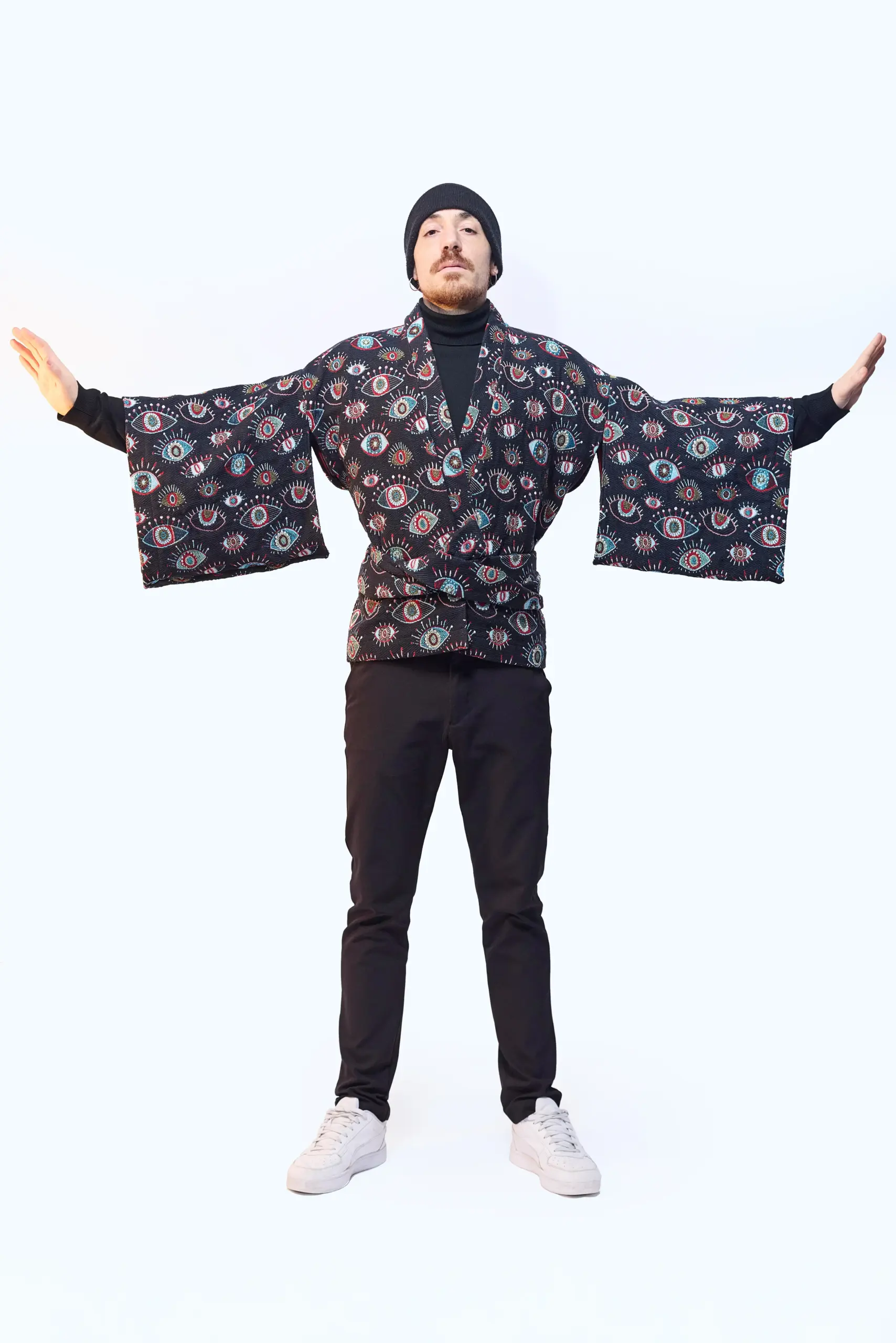Il Kimono genderless in tessuto, creato dalla Casa di Moda Davide Muccinelli, è un accessorio luxury contemporaneo e sostenibile che reinterpreta in chiave moderna i tradizionali Kimono. KiMONO EYES nasce dall’estro creativo della Maison e dall’utilizzo di tessuti di recupero, per dare vita a un pezzo davvero unico ed esclusivo.