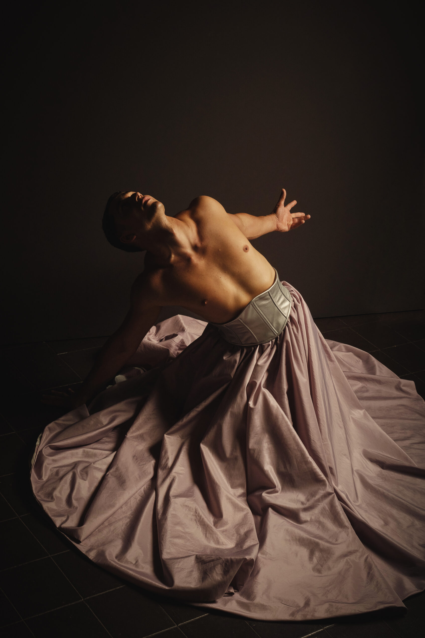 Il fotografo Marco Rossetti coglie l’interpretazione di Matteo Molinari, mentre con passi ed evoluzioni di danza veste l’Alta Moda del Brand