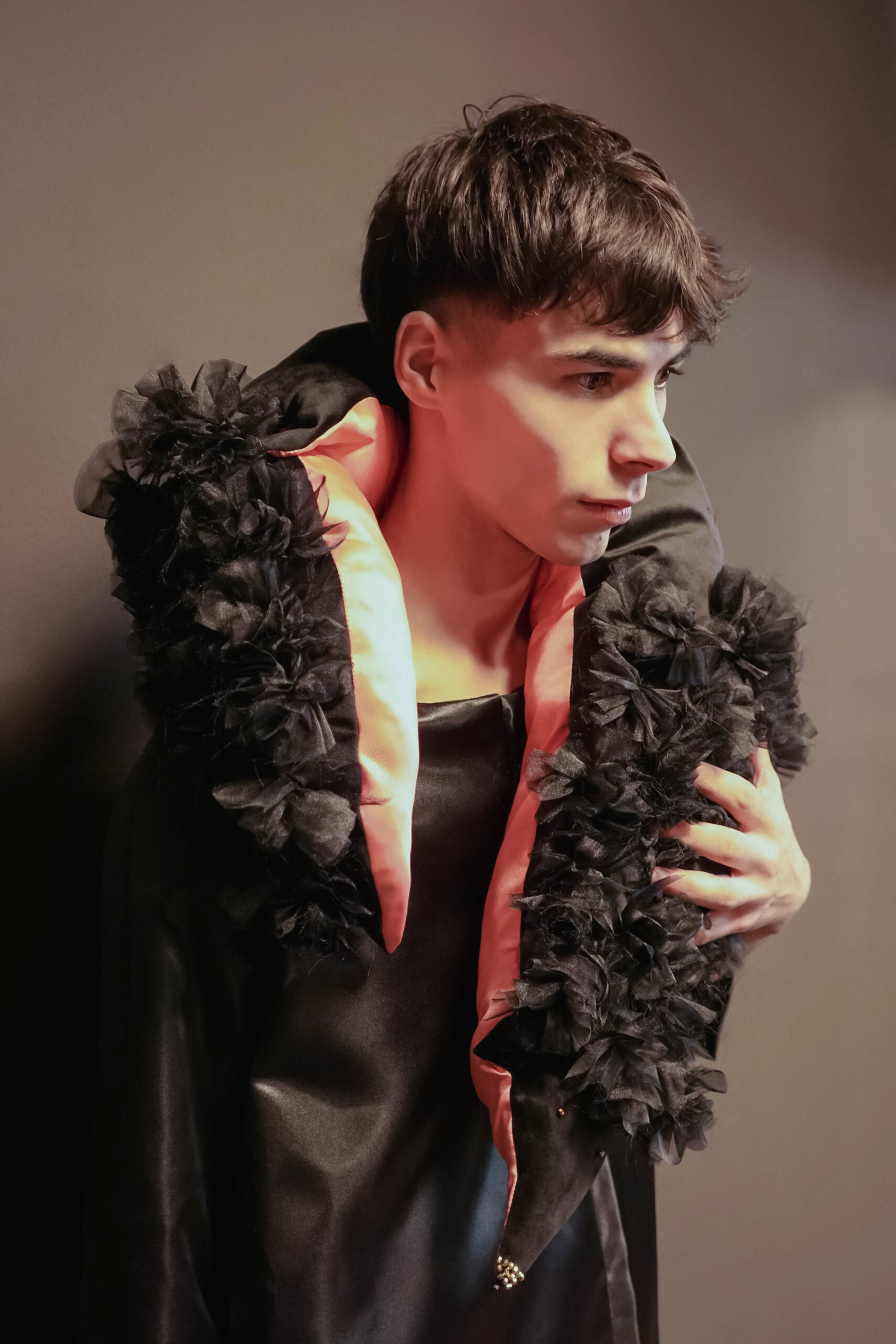 Ciò che gli anni ‘20 del XX secolo ha rega- lato è un’eccezionale moda ed eleganza, con tendenze diffuse come i colli di pelliccia di volpe, le bluse a incrocio (surplice wrap blouse) e balli sfarzosi. Allo stesso tempo, questo periodo ha visto i primi passi del movimento per i diritti LGBTQ+. Queste fotografie mirano a reinterpretare in modo innovativo l’estetica degli anni ‘20, offrendo una prospettiva contemporanea sulla moda, esplorando la sua evoluzione e la sosteni- bilità.