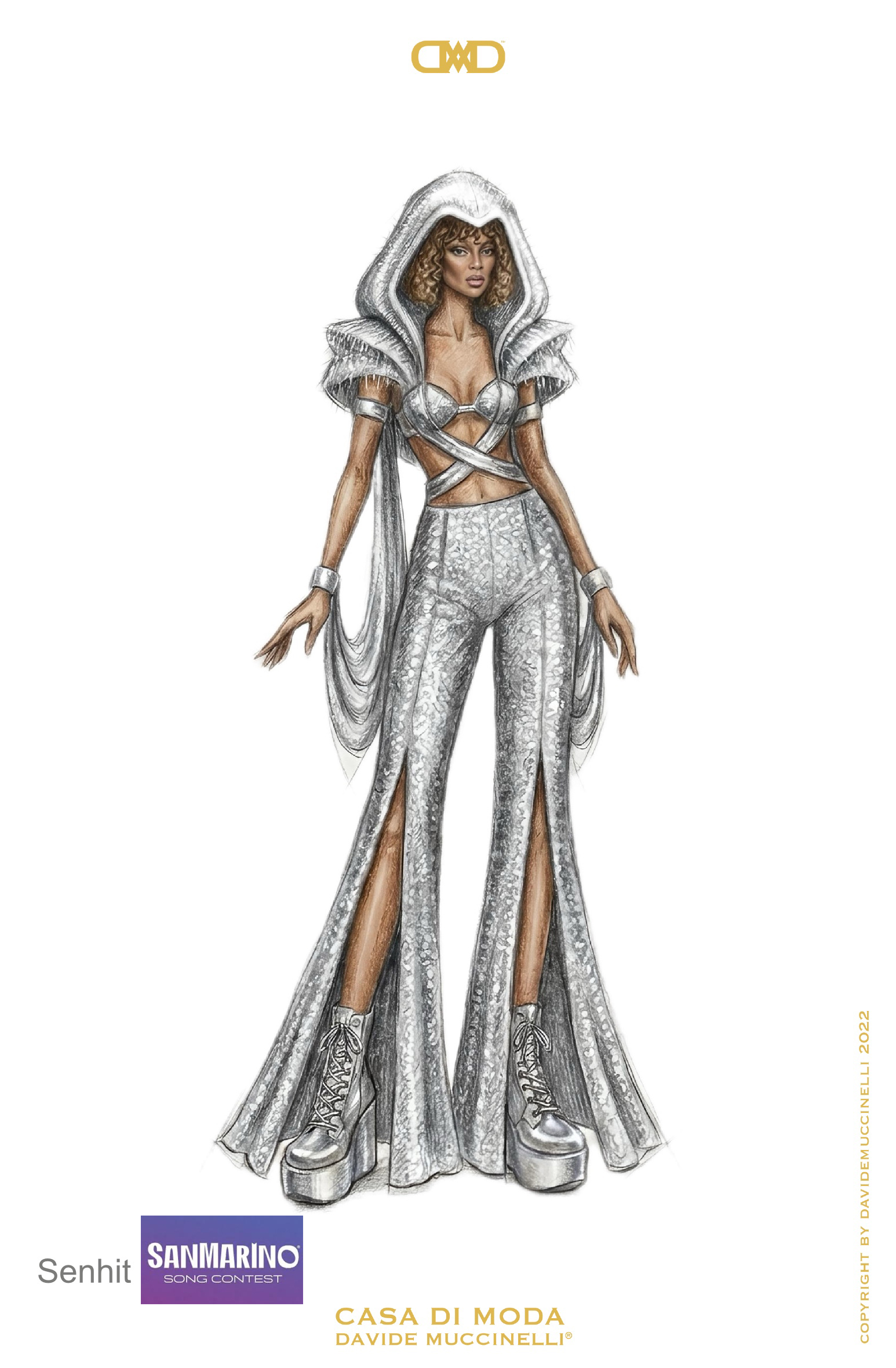 “Vedere Senhit interpretare ”Egida di luce” e trionfare a San Marino è per noi motivo di immenso orgoglio,” dichiarano i designer. “Rappresenta la nostra idea di couture per lo show: un equilibrio tra artigianato storico e visione futuristica, capace di sostenere il talento straordinario di un’artista che abbatte ogni barriera.”